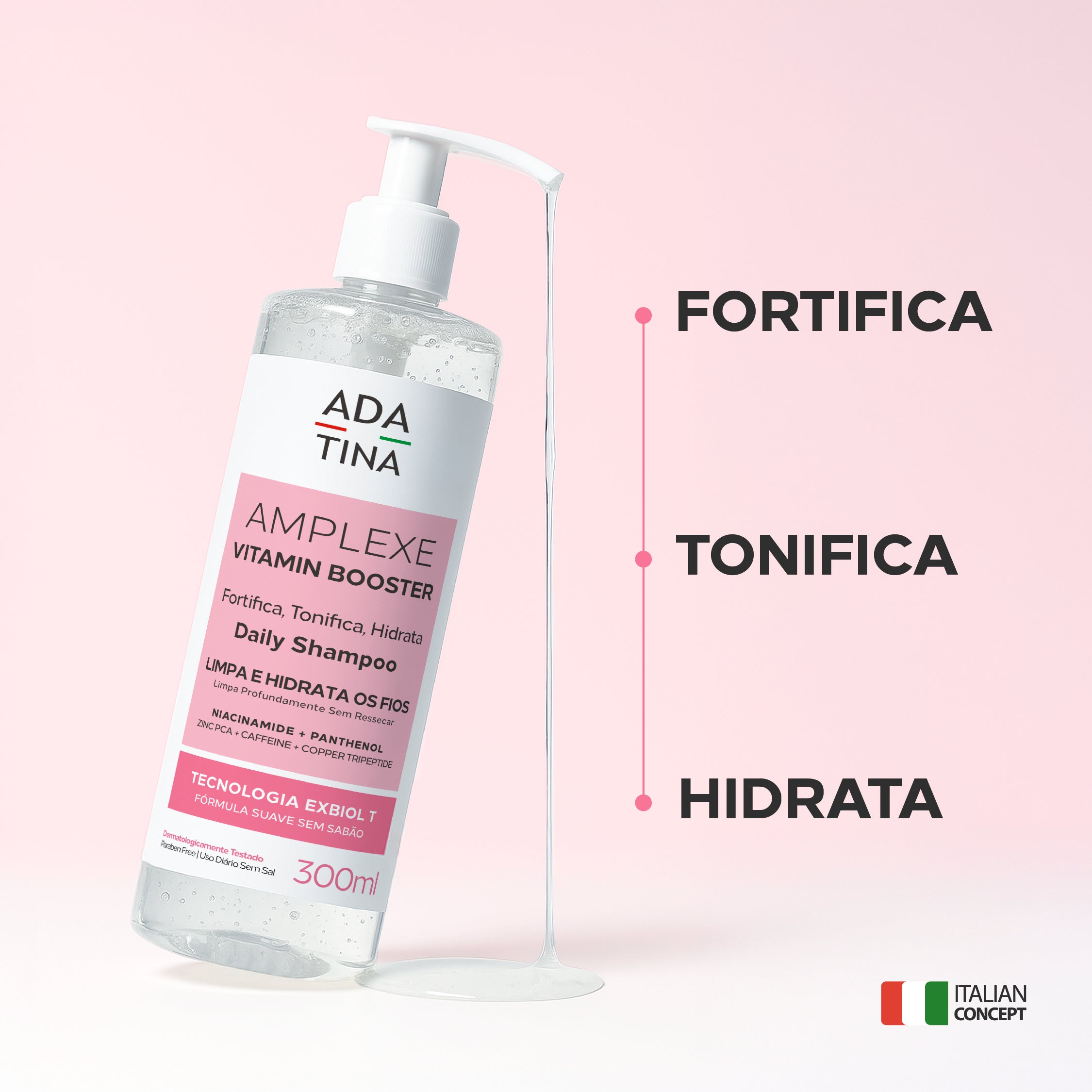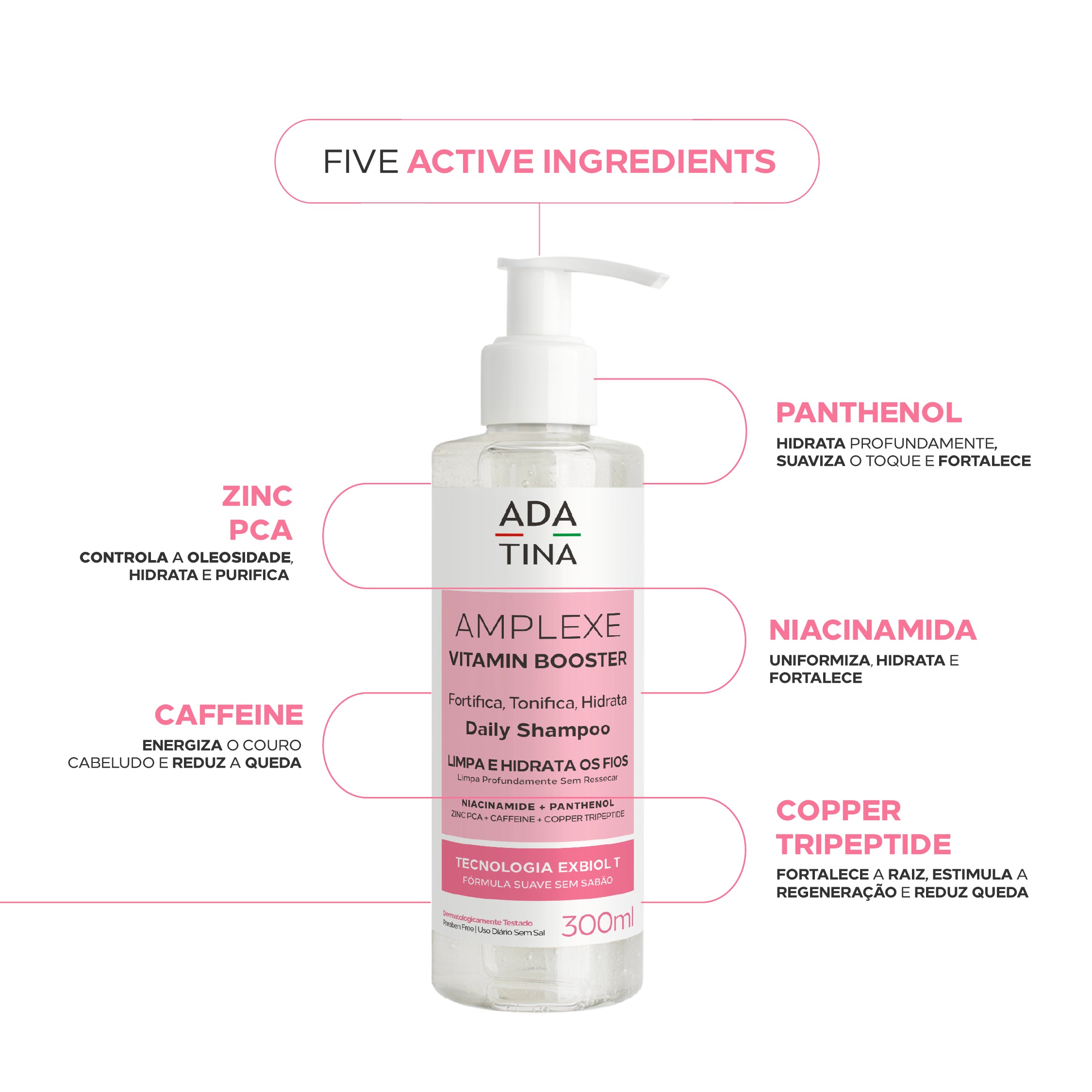 Diferente dos shampoos comuns, Amplexe Vitamin Booster oferece 5 vezes mais força e crescimento, graças à Tecnologia Exbiol Triforce, uma tecnologia biologicamente ativa que atua em três frentes: fortificação, tonificação e hidratação profunda.