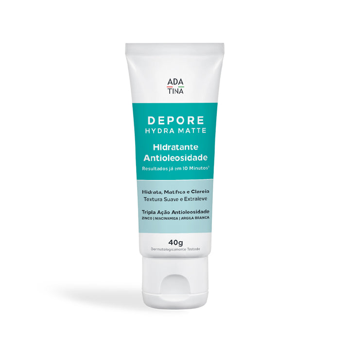 Depore Hydra Matte é um hidratante facial oil-free para pele oleosa, acneica e com poros dilatados, desenvolvido pela ADA TINA Italy com tecnologia dermatológica avançada. Sua textura extraleve e suave hidrata intensamente enquanto controla o excesso de oleosidade já nos primeiros 10 minutos de aplicação, garantindo pele sequinha, uniforme e com efeito matte duradouro.