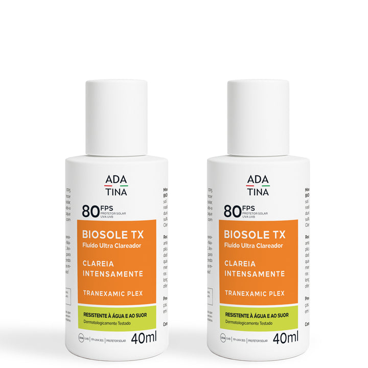 Biosole TX FPS 80 é um protetor solar fluido clareador desenvolvido especialmente para peles com manchas, melasma e hiperpigmentação persistentes.