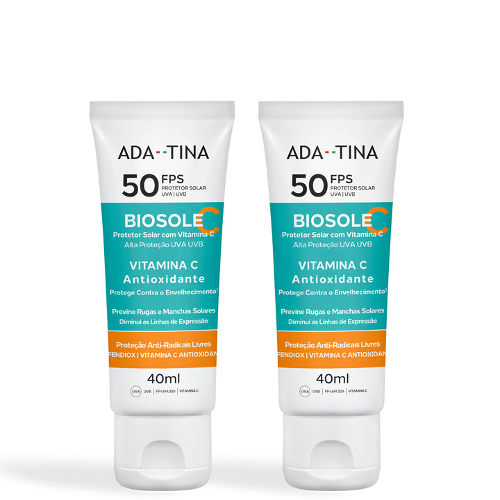 O Biosole C FPS 50 da ADA TINA Italy é o protetor solar clareador facial desenvolvido para o clima tropical do Brasil. Com Vitamina C, Niacinamida e Difendiox®, oferece tripla proteção contra UVA, UVB e radicais livres, clareia manchas, previne melasma e rugas, e mantém a pele protegida, firme e iluminada todos os dias.