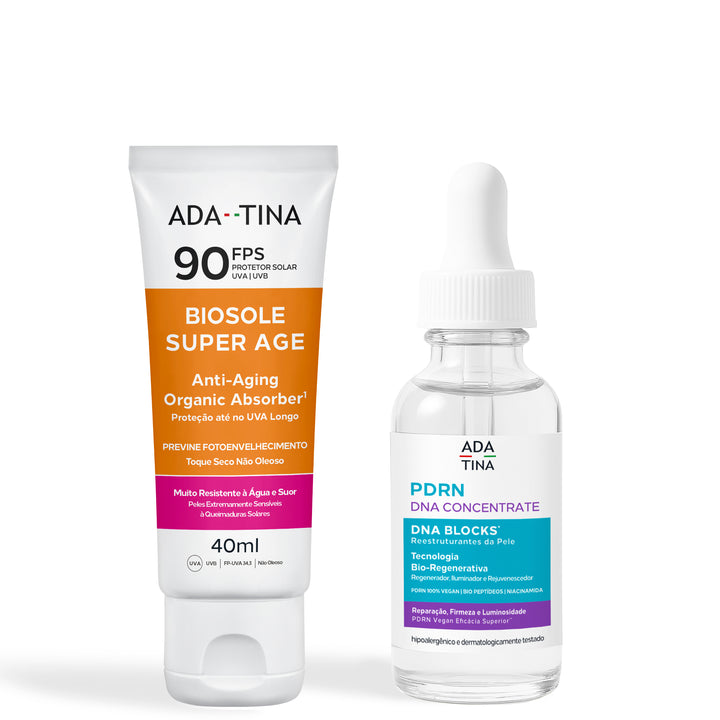 Não. Enquanto o protetor solar protege a pele contra novos danos, a Tecnologia DNA Blocks® repara os danos que já ocorreram no DNA e fortalece a resistência biológica da pele. Ambos devem ser usados em conjunto para uma proteção 360°.