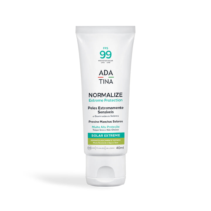 O Normalize Extreme Protection FPS 99 é um protetor solar facial de altíssima proteção, desenvolvido pela ADA TINA para peles oleosas, mistas, acneicas e extremamente sensíveis ao sol. Com FPS 99 e ampla proteção contra UVA, UVB, UVA1 Longo e Luz Azul, ajuda a prevenir queimaduras solares, manchas resistentes e fotoenvelhecimento precoce.